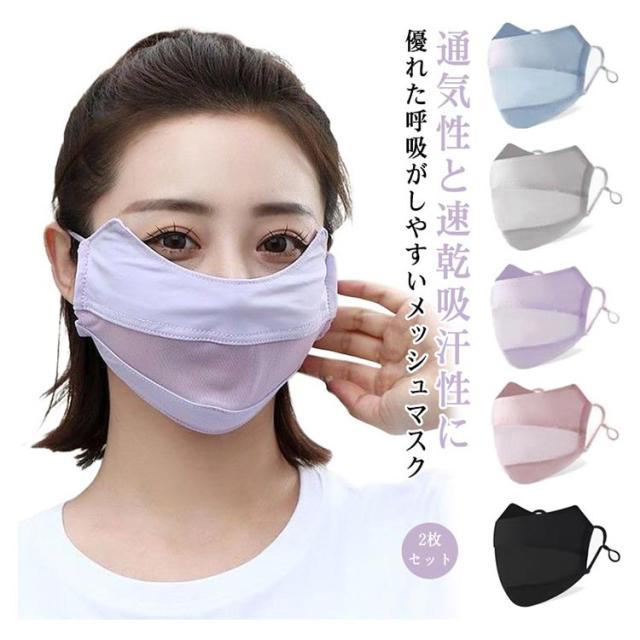 薄手 メッシュ 日焼け防止 アイス 耳が痛くない UVカットマスク 息苦しくない 洗える UVケア 母の日 父の日 大きいサイズ 息がしやすい 夏 紫外線対策 夏マスク 接触冷感 2枚セット 遮光マスク 通気性 秋 冬 春 やわらかい 花粉 日焼け防止 持ち運び