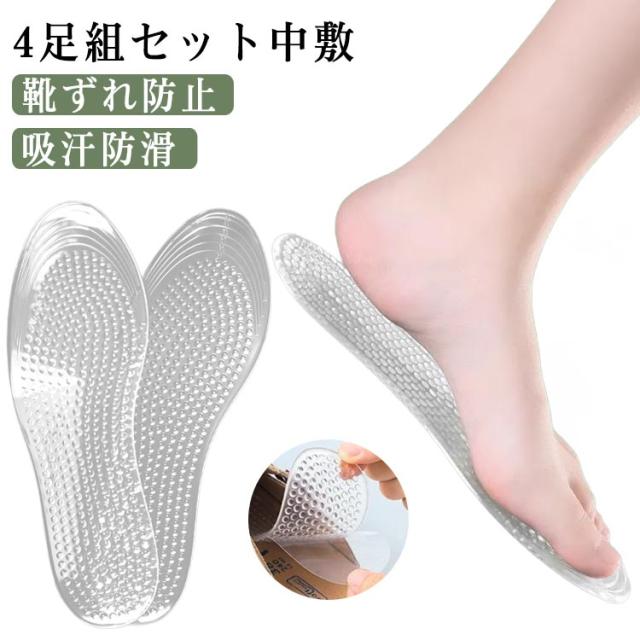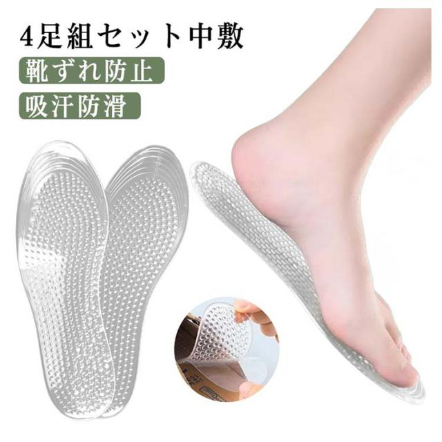 インソールカバー 透明 中敷き 吸汗防滑 4足セット 超薄型 メンズ 中敷 レディース パンプス 革靴 シリコン ローファー 4足セット 保護 靴 サンダル 春夏 滑り止め パッド 低反発 靴ずれ防止 吸収 減震クッション ハイヒール