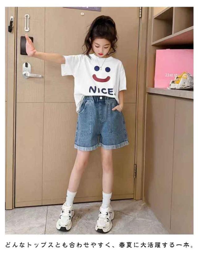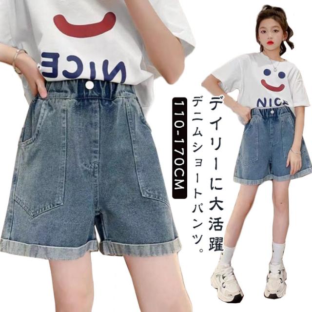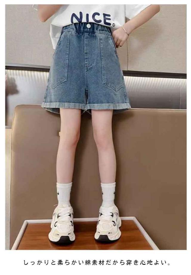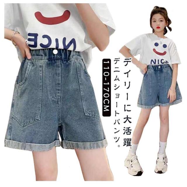 ショートパンツ 子供服 ボトムス デニムパンツ 短パン 春夏 かわいい ハーフパンツ ウエストゴム ロールアップ デニムパンツ オシャレ 半ズボン カジュアル
