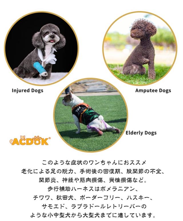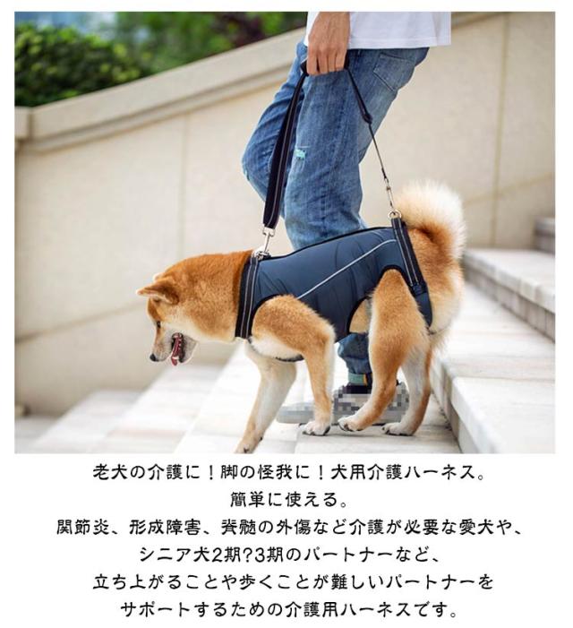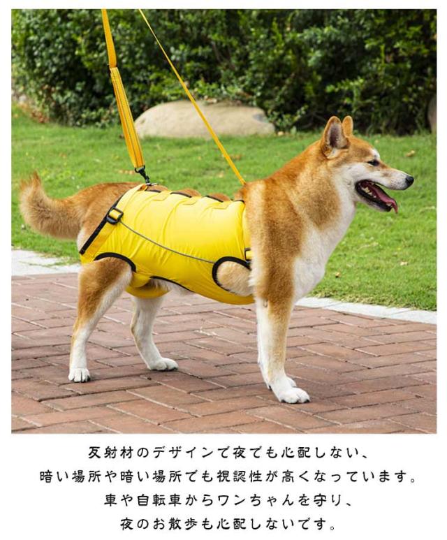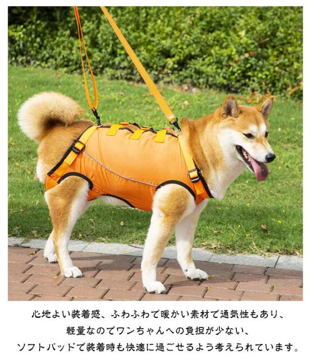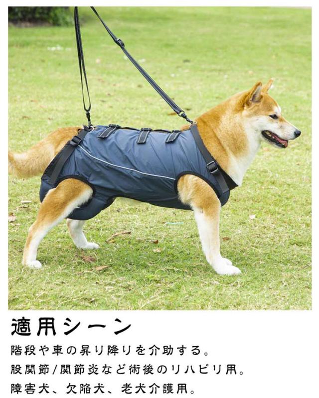 | 歩行補助&老犬介護 老犬の介護に!脚の怪我に!犬用介護ハーネス。簡単に使える。 関節炎、形成障害、脊髄の外傷など介護が必要な愛犬や、シニア犬2期?3期のパートナーなど、立ち上がることや歩くことが難しいパートナーをサポートするための介護用ハーネスです。 このような症状のワンちゃんにおススメ 老化による足の脱力、手術後の回復期、股関節の不全、関節炎、神経や筋肉損傷、脊椎損傷など。 歩行補助ハーネスはポメラニアン、チワワ、秋田犬、ボーダーコリー、ハスキー、サモエド、ラブラドールレトリーバーのような小中型犬から大型犬までに適しています。 適用シーン 階段や車の昇り降りを介助する。 股関節/関節炎など術後のリハビリ用。 障害犬、欠陥犬、老犬介護用。 その他嬉しいポイント 通気性良い素材、装着時も快適に過ごせるよう考えられています。 反射材のデザインで夜でも心配しない、暗い場所や暗い場所でも視認性が高くなっています。車や自転車からワンちゃんを守り、夜のお散歩も心配しないです。 心地よい装着感、ふわふわで暖かい素材で通気性もあり、軽量なのでワンちゃんへの負担が少ない、ソフトパッドで装着時も快適に過ごせるよう考えられています。 | |