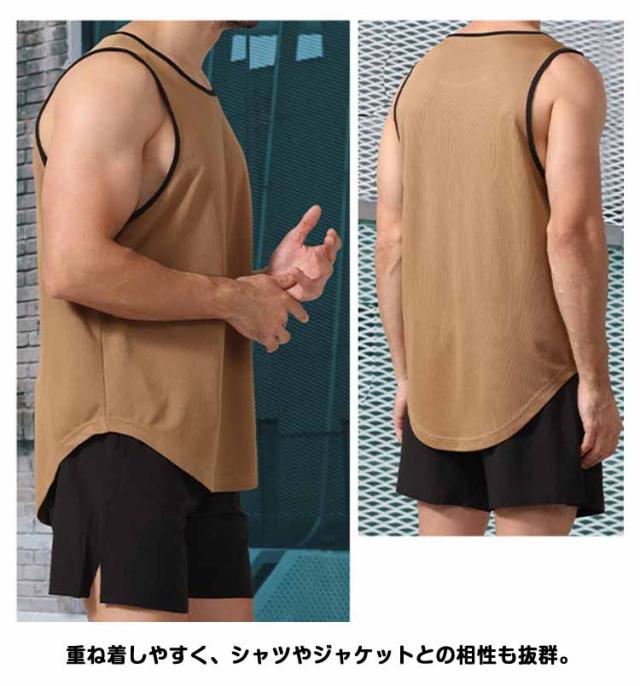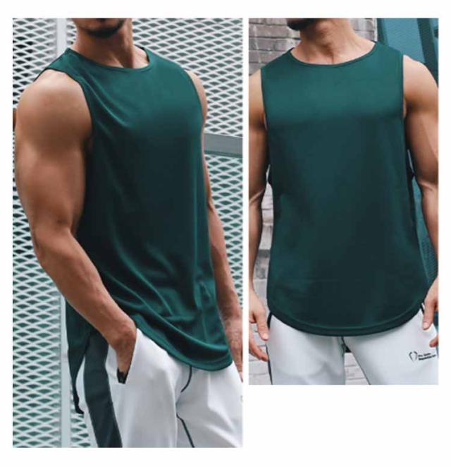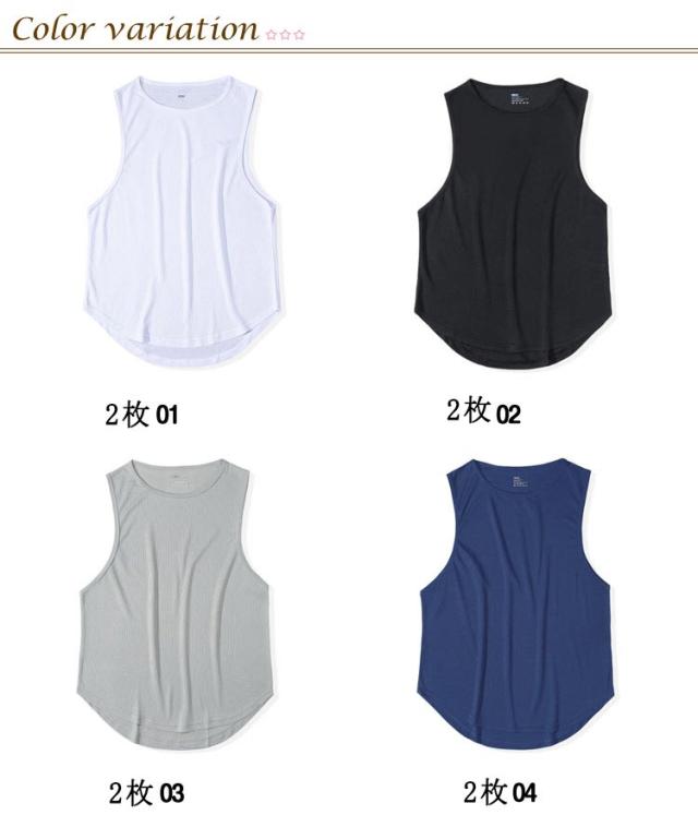 ストレッチ Vネック 無地 タンクトップ ロング おしゃれ ノースリーブ 2枚セット 涼しい 2枚セット トップス 伸縮性 カットソー メンズ 吸汗速乾 Tシャツ スポーツ 無地 夏 大きいサイズ トップス インナー