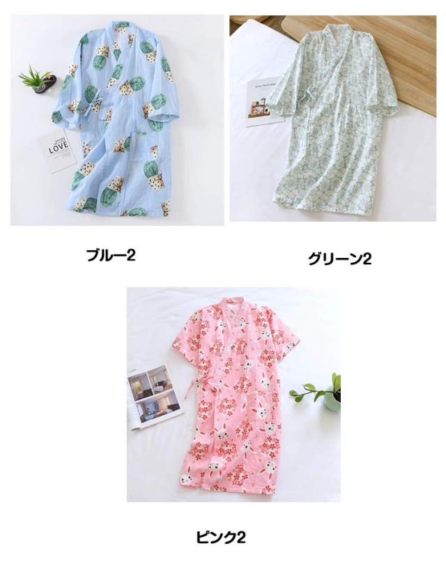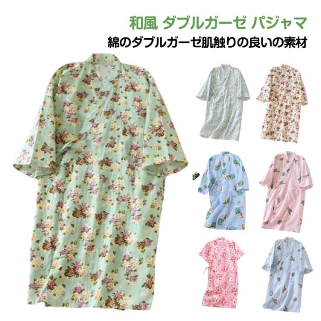 レディース 和風 寝巻き 婦人用 ガーゼ パジャマ 前開き 寝間着 寝巻 ねまき 甚平 ゆかた 作務衣 作業着 夏 女性用 介護用 ナイトガウン 入院 浴衣 洗える浴衣 浴衣 夏素材 綿 通気性良く 花柄 総柄 涼しい 部屋着 柔らかい 母の日