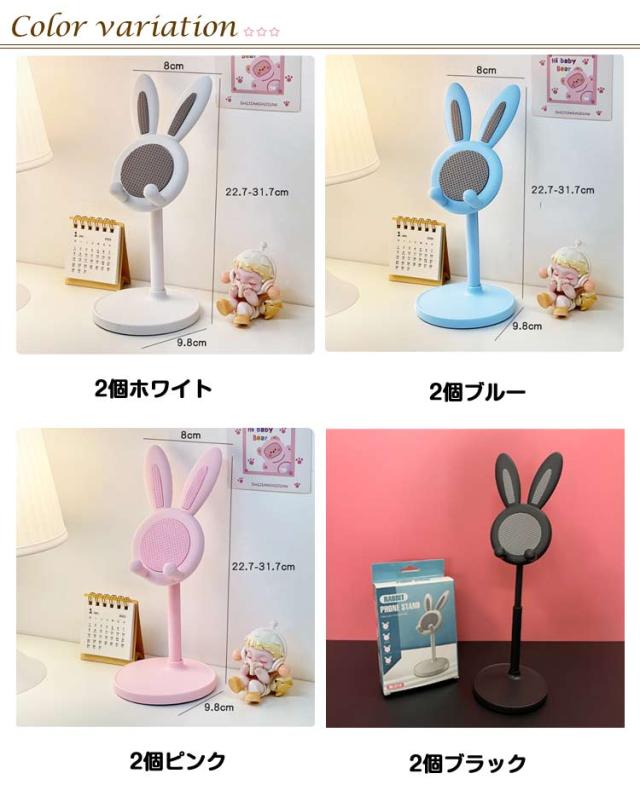 2個セット 2個セット スマートフォンスタンド タブレットスタンド 高さ調節可 携帯電話 スマホスタンド 卓上 角度調節可 滑り止め ウサギデザイン ウサギ耳 かわいい