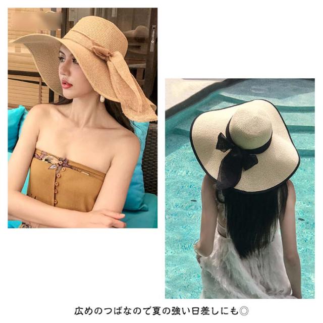 編み つば15cm おしゃれ 麦わら 麦わら帽子 ハット 帽子 レディース バケットハット かわいい 春夏 つば15cm リボン付き ペーパー 深め 日よけ UVカット 紫外線カット 旅行 通気性 涼しい 遮光 日除け帽子 小顔効果 ストロー帽子 ビーチ リゾート つば広帽子