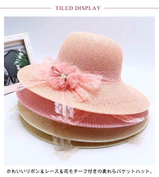 | かわいいリボン&レース&花モチーフ付きの麦わらバケットハット。【シニアファッション】【全20タイプ】 コンパクトに折り畳めるので、旅行などの持ち運びにも◎ 広めのつばなので夏の強い日差しにも◎ 通気性も良く、春夏の日焼け対策に最適なアイテムです。 普段使いはもちろん海、公園などのアウトドアにも雰囲気がピッタリです。 | |