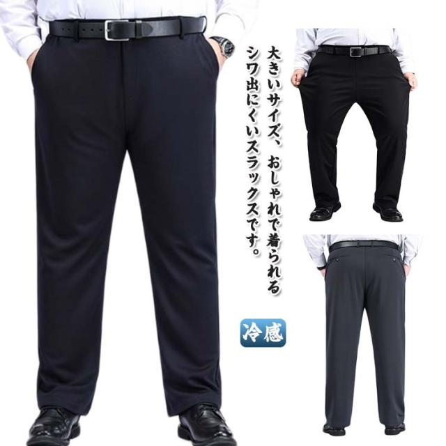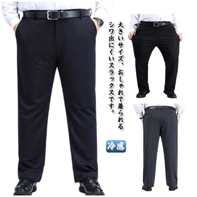 大きいサイズ 大きいサイズ ひんやり 春夏 メンズ ビジネス ストレッチパンツ ストレッチ 涼感パンツ アイスシルクパンツ ストレートパンツ スラックス 夏用 洗える ウォッシャブル ビジネス パンツ 体型カバー 結婚式