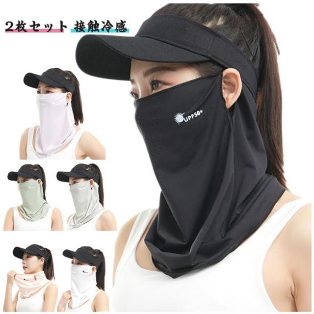 ネックガード フェイスカバー UPF50+ UPF50+ スポーツ 夏 マスク 日焼け防止 2枚セット フェイスガード フェイスマスク 首 接触冷感 UVカット ひんやり 熱中症対策 紫外線防止 日よけ 顔 レディース 自転車 ランニング
