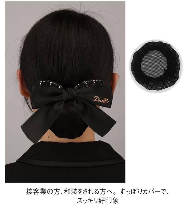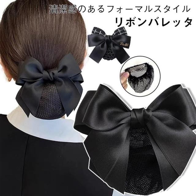 | 清潔感のあるフォーマルスタイル リボンバレッタ ネット付きなのできちんとした印象になります。 余分な装飾がないのでオフィスやお仕事、冠婚葬祭でも活躍します。 接客業の方、和装をされる方へ。 すっぽりカバーで、スッキリ好印象♪ | |