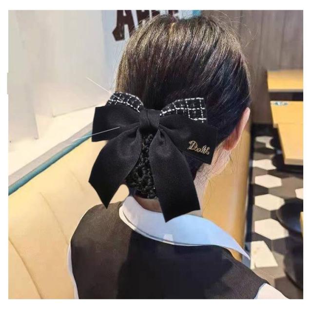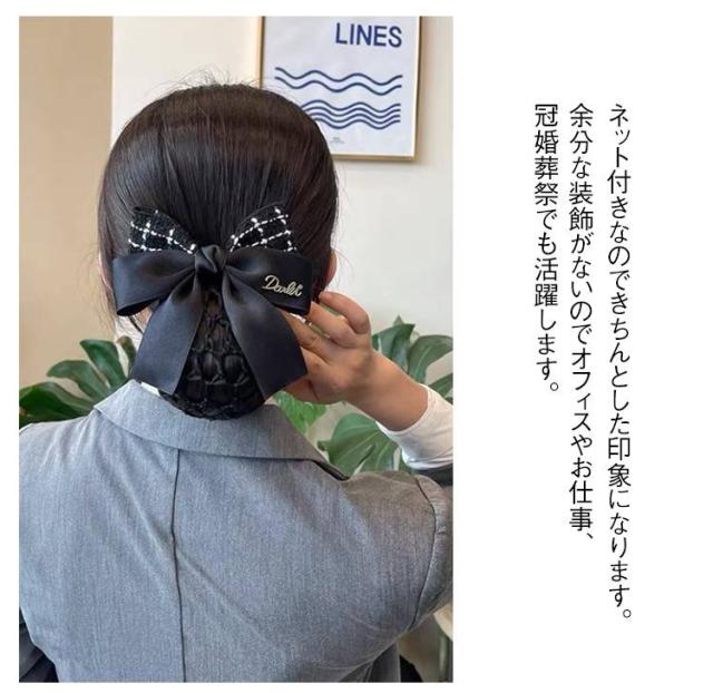 送料無料 ネット シニヨン 葬式 まとめ髪 シニョン 簡単 ブラック 仕事 黒 送料無料 お団子 就活 リボンバレッタ 仕事 業務 着物 ネットつき サテン ヘアアクセサリー 母の日 ギフト