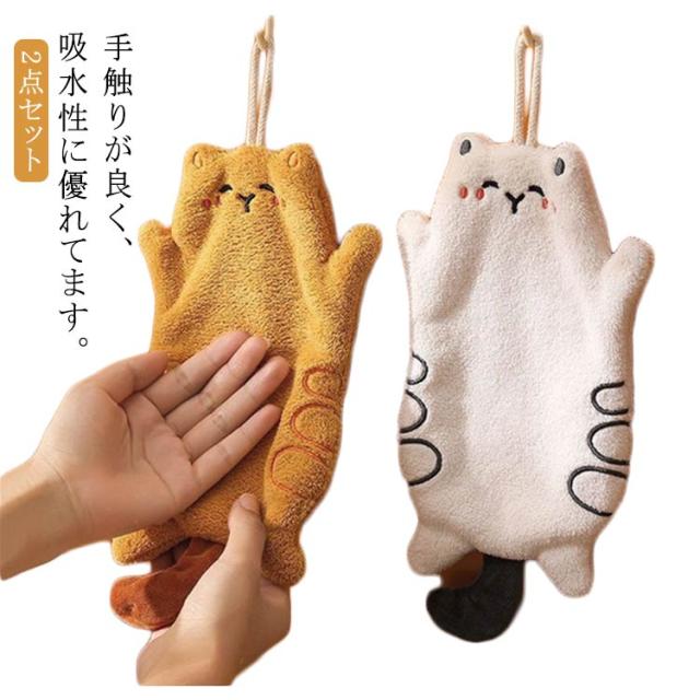 ハンドタオル ねこ ふきん 掃除 台拭き 超吸水 ふきん 手拭きタオル 掃除タオル キッチンタオル 2点セット 雑巾 強吸水性 キッチンタオル 布巾 手拭きタオル タオル キッチンクロス おしゃれ かわいい 柔らかい 食器用 ループ付き 台ふきん