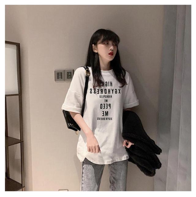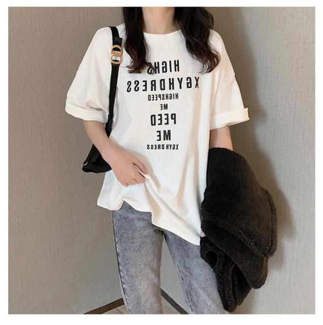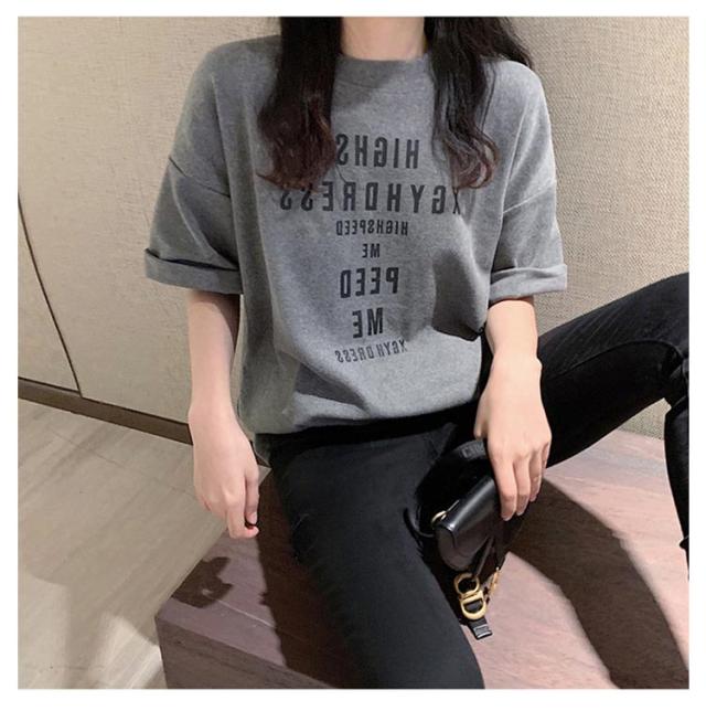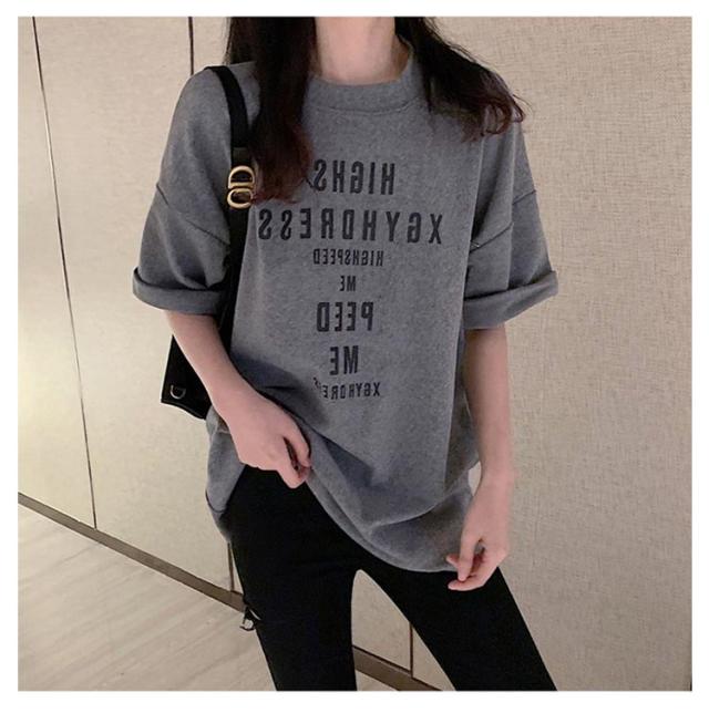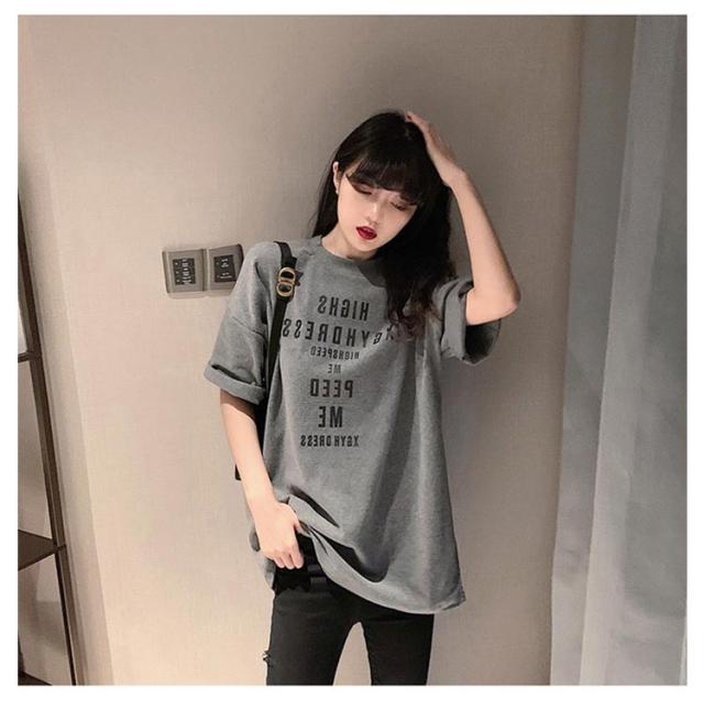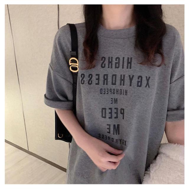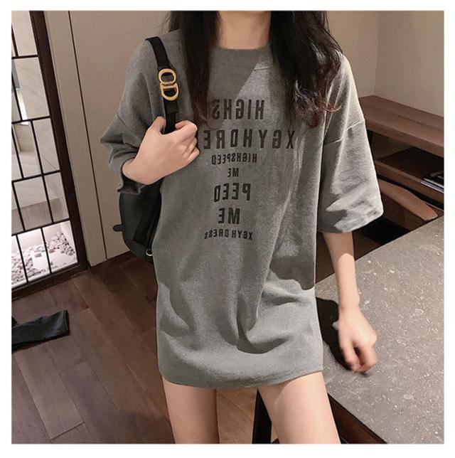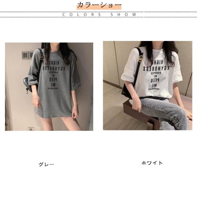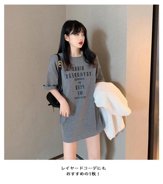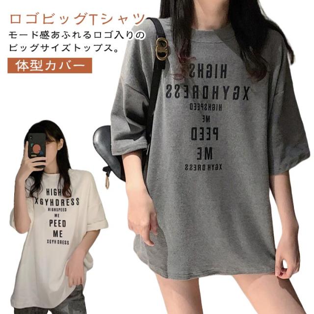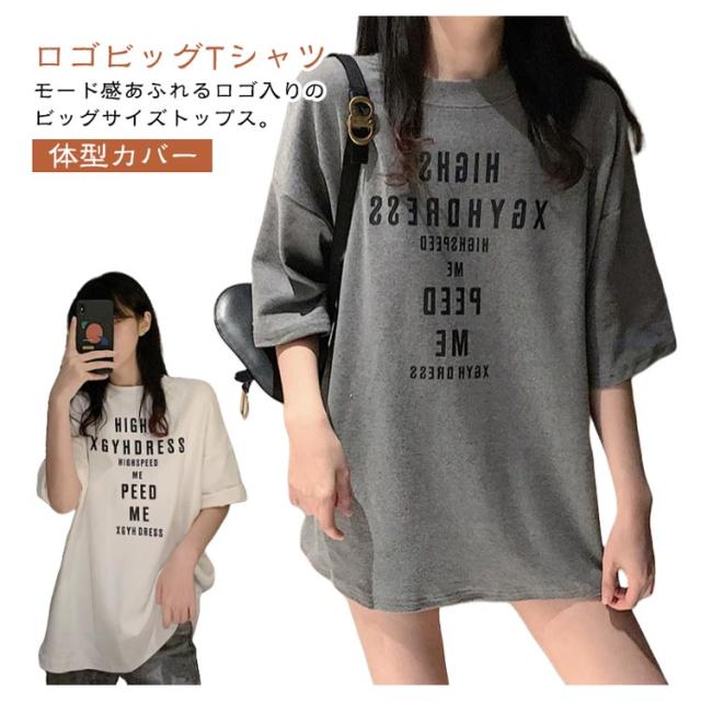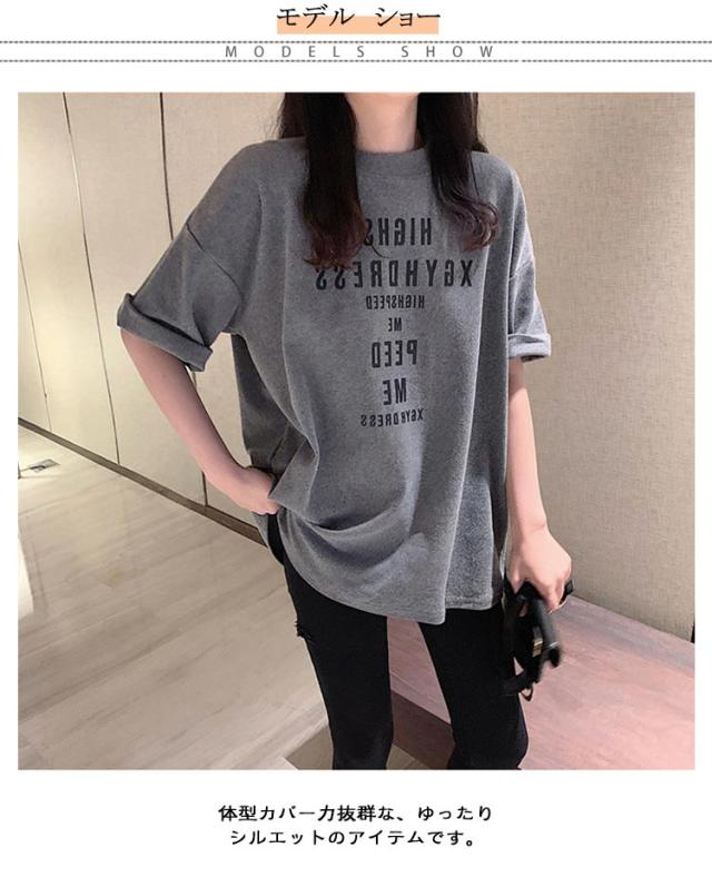 大きめ tシャツ ゆったり 半袖 レディース tシャツ カットソー 春夏 トップス 大きいサイズ Uネック ビッグサイズ ロング ロゴtシャツ Tシャツ チュニック グレー 大人 体型カバー オシャレ