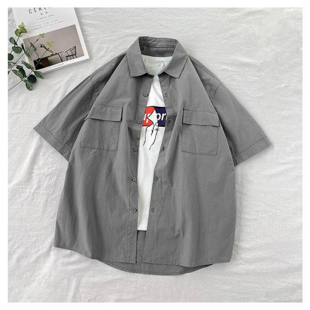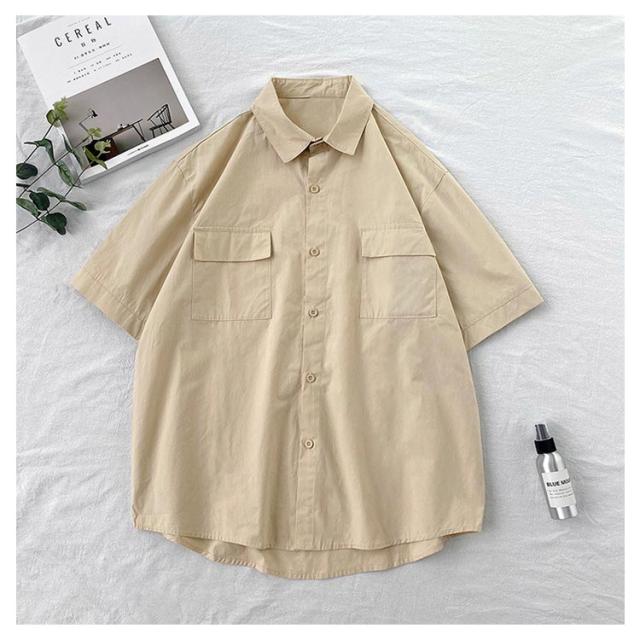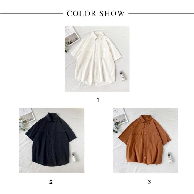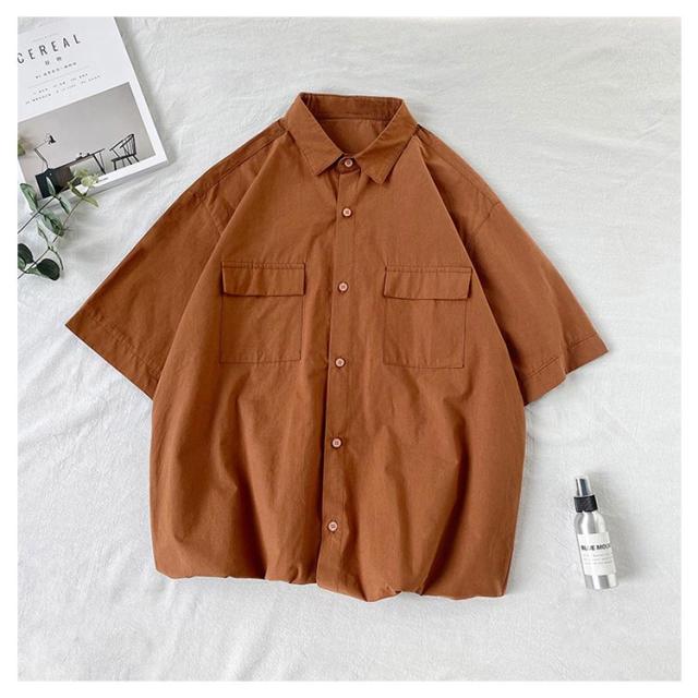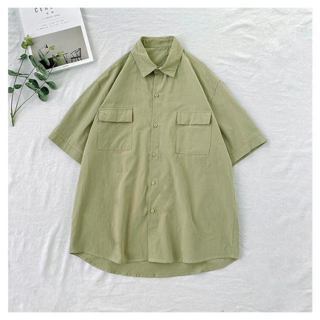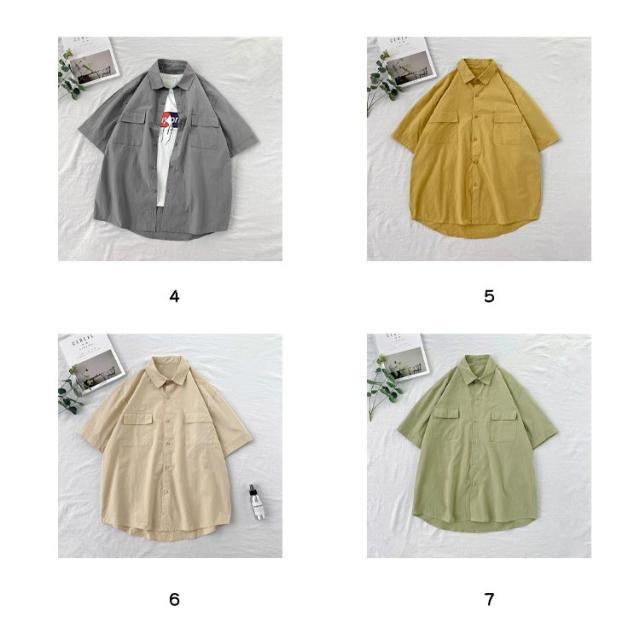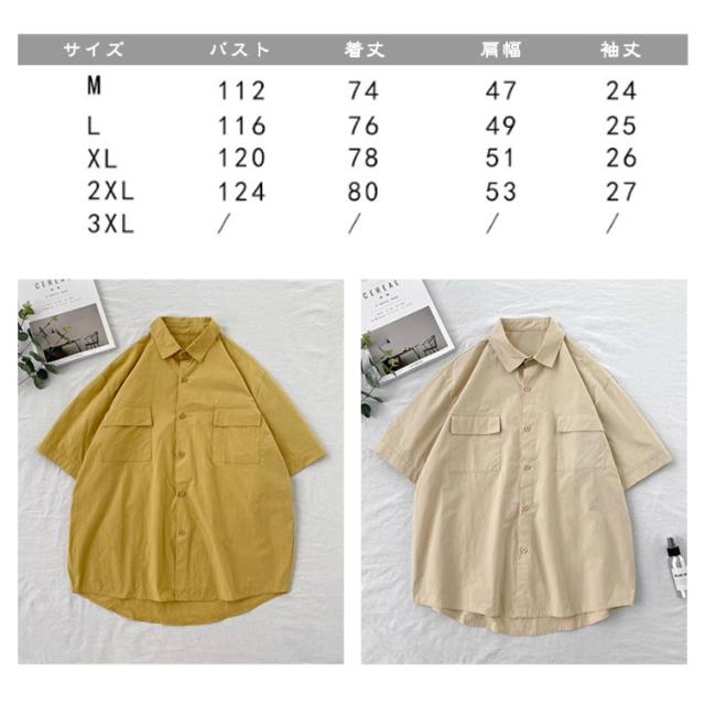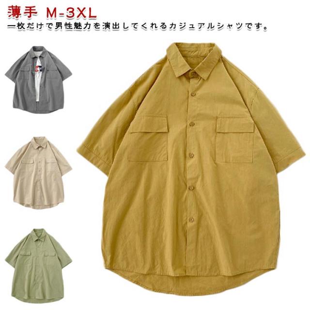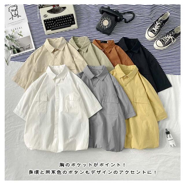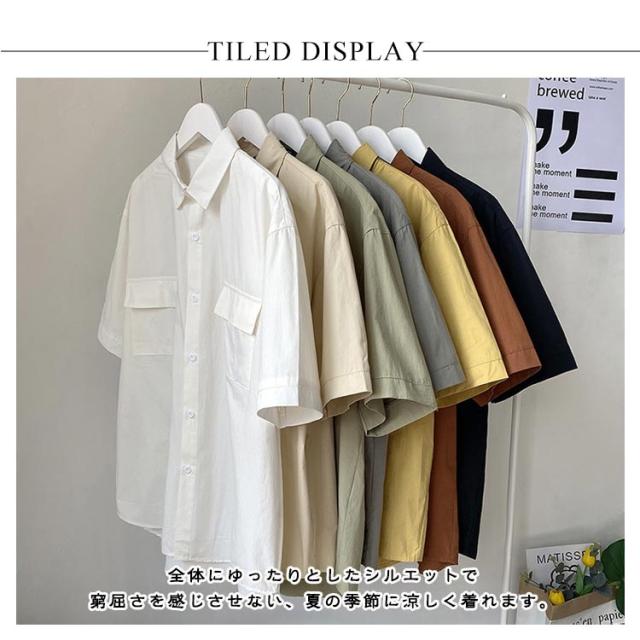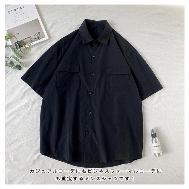開襟シャツ 無地 半袖 ビジネス ゴルフ メンズ 開襟シャツ トップス シャツ 夏物 ゆったり オフィス 在宅 胸ポケット クールビズ 通勤 通学 ワークシャツ サーフ系 仕事 お洒落