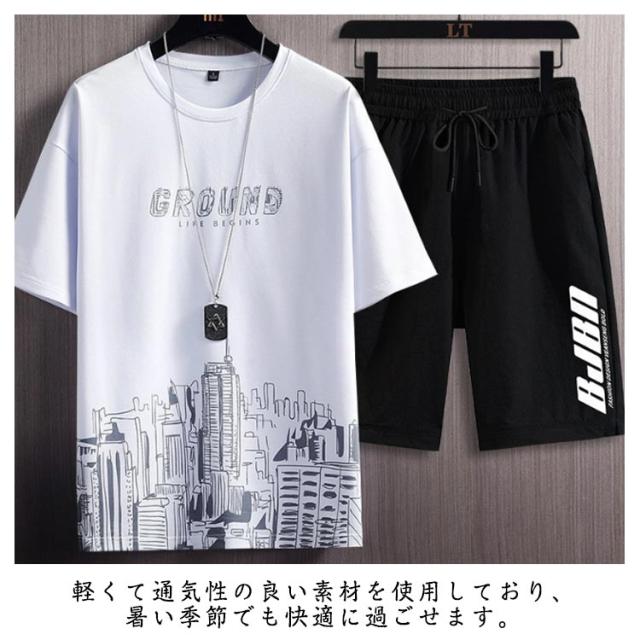 春 スポーツウェア ひんやり ハーフパンツ 夏用 メンズ 短パン 半袖Tシャツ 接触冷感 セットアップ ジャージ 上下セット メンズ 無地 快適 ゆったり ルームウェア 部屋着