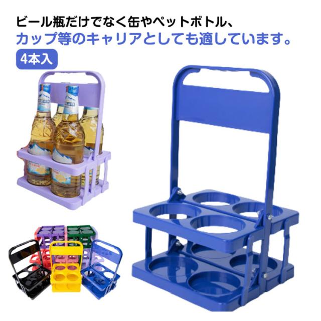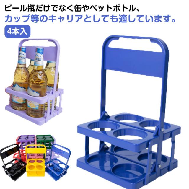 | 4本入 ビール瓶だけでなく缶やペットボトル、 カップ等のキャリアとしても適しています。 サイズの合う瓶や缶を4本収納でき簡単に持ち運びできます。 折りたためて持ち運びが便利。 | |