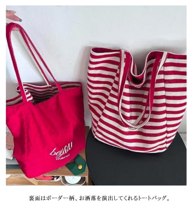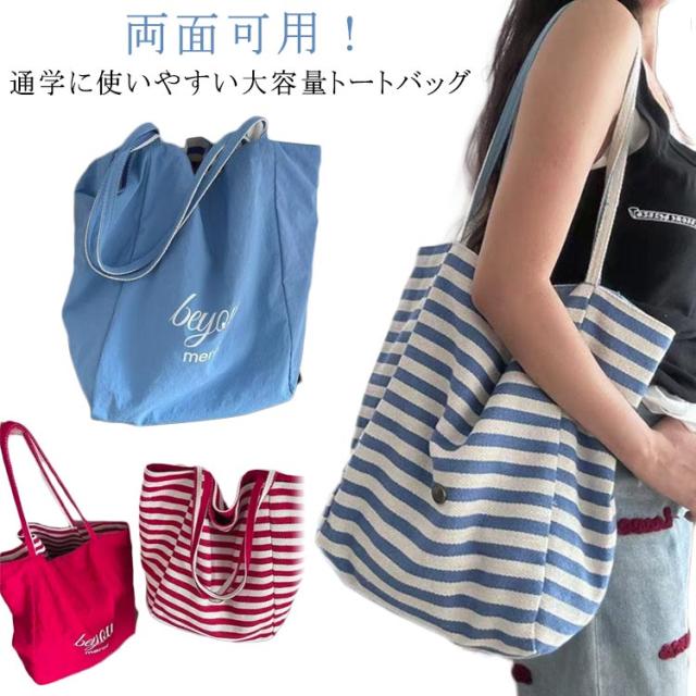 トートバッグ マザー 大きめ マザーズバッグ エコバッグ レディース BIG 肩掛け 手提げバッグ ショッピングバッグ 軽量 無地 通勤 トートバッグ ボーダー柄 トート ママ 肩掛けバッグ 両面用可能 かばん 買い物バッグ ビッグ 日帰り A4 通学 可愛い ギフト プレゼント