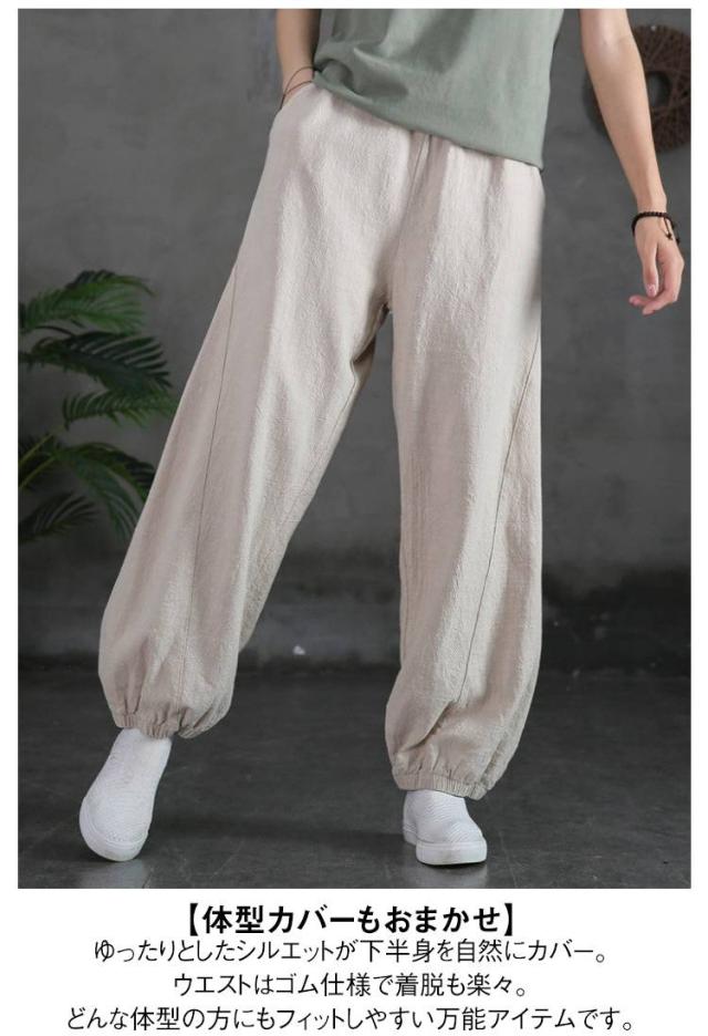 レディース バルーンパンツ 2025春夏新作 カジュアルパンツ 綿麻風 ゆったり ジョガーパンツ ナチュラル 無地 2025春夏新作 綿 ロングパンツ 体型カバー リラックス ウエストゴム