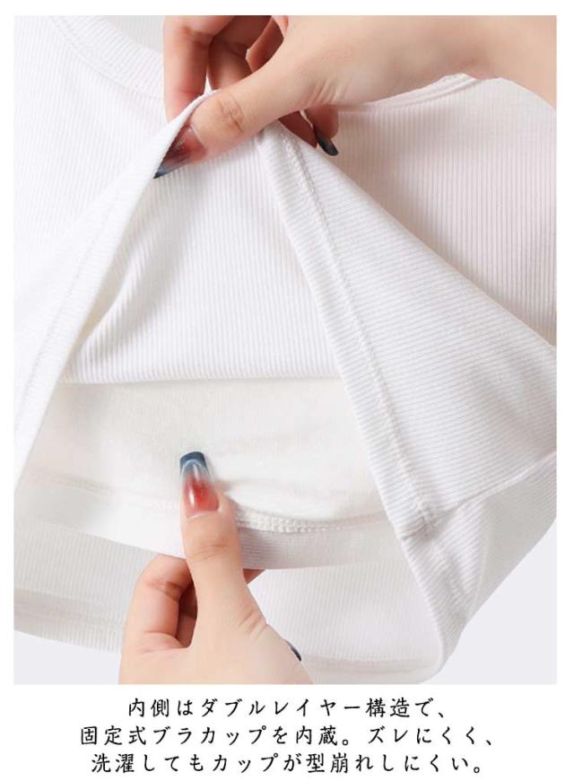 | ブラいらずのスクエアネックTシャツ クロップド丈 リブ素材 内側はダブルレイヤー構造で、固定式ブラカップを内蔵。ズレにくく、洗濯してもカップが型崩れしにくい。 固定式ブラカップ付き、ノンワイヤーでストレスフリー 柔らかくて通気性のある着心地。 カラー:ホワイト/ブラック/ライトグレー/ダークグレー クロップド丈&ウエストシェイプで細見え、スタイルアップも叶います。インナーにもトップスにも、毎日着たくなる万能アイテムです。 | |