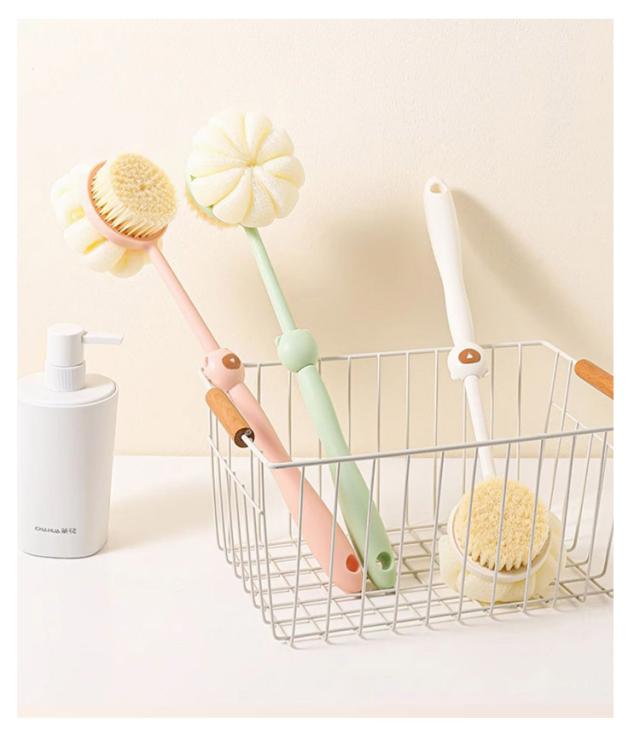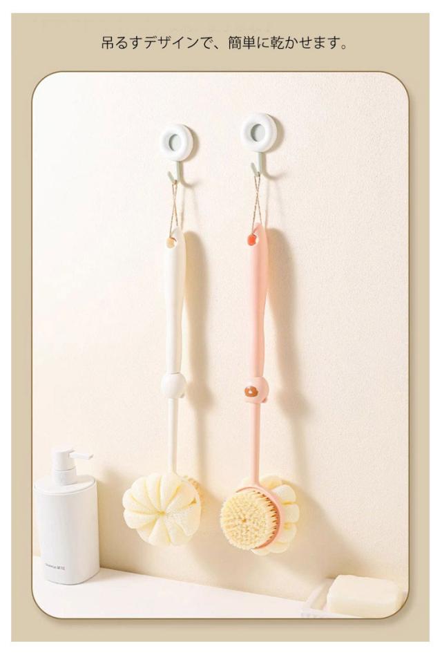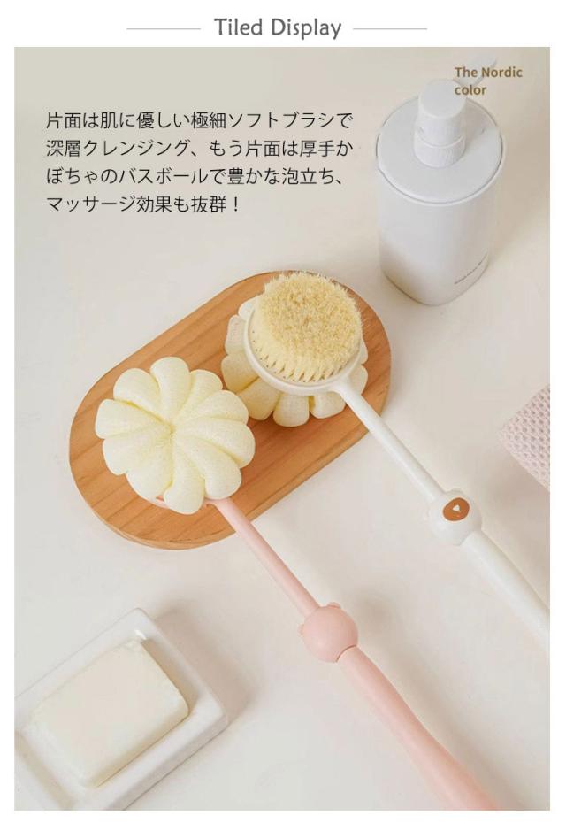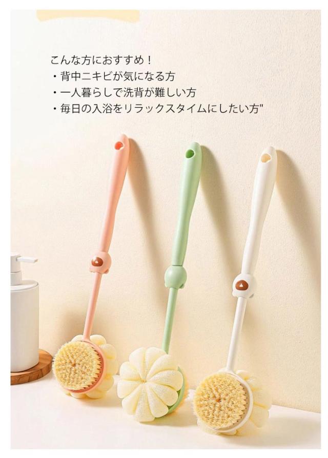 背中 背中洗いブラシ ボディブラシ 程よい硬さ 両面 肌に優しい ブラシ 背中 心地よい ロング ボディスポンジ かぼちゃのバスボール 臭わない ソフト毛 極細毛 防止 背中ニキビ お風呂グッズ