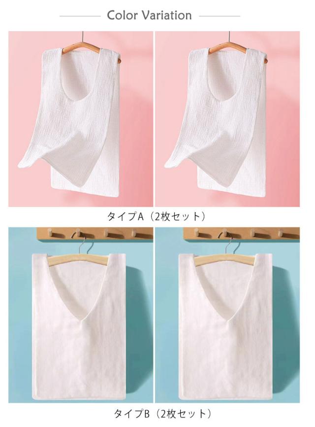 | 【汗染み対策に!】4重ガーゼのやわらかインナータンクトップ Uネック&Vネック2デザイン! 2枚セットで洗い替え楽々・サイドオープンで着脱簡単 上質なコットン素材で肌に優しく、吸汗速乾性に優れています。 汗をかいても服の上からでも簡単に落とせます! 汗をしっかりキャッチし、汗ジミを防ぎます。 通気性に優れ、蒸れない つけ心地も滑らかで一日中快適です。 | |