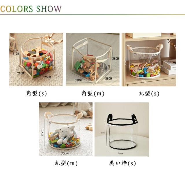 | クリアPVC素材おもちゃ収納バッグ 丸型・角型、Sサイズ・Lサイズの選べる ・厚手のPVC素材でしっかり&丈夫 ・中身が見えるクリアタイプで探し物ゼロ ・大容量で収納力抜群、スペース節約にも◎ ・ぬいぐるみ、ブロック、おもちゃ、雑貨など多用途対応 ・ナチュラルな雰囲気のコットン織り持ち手付き | |