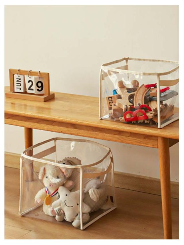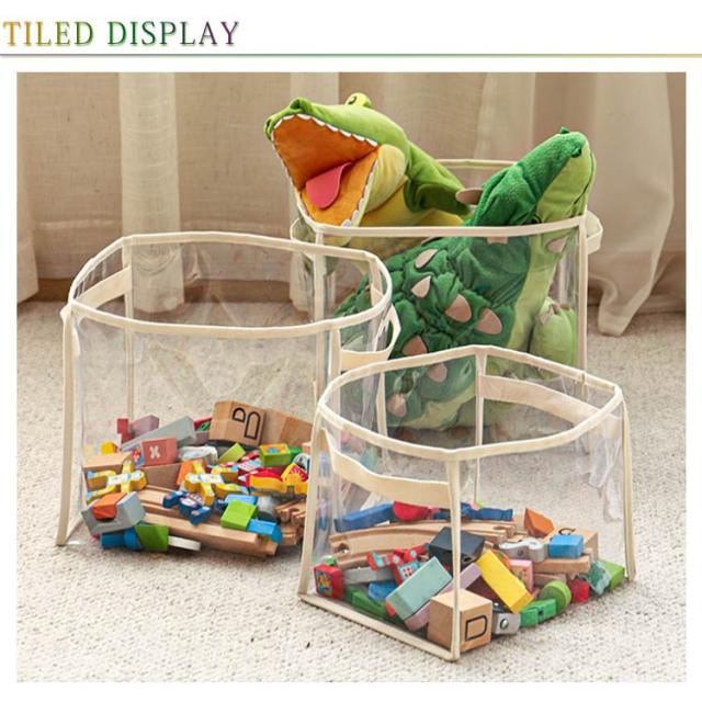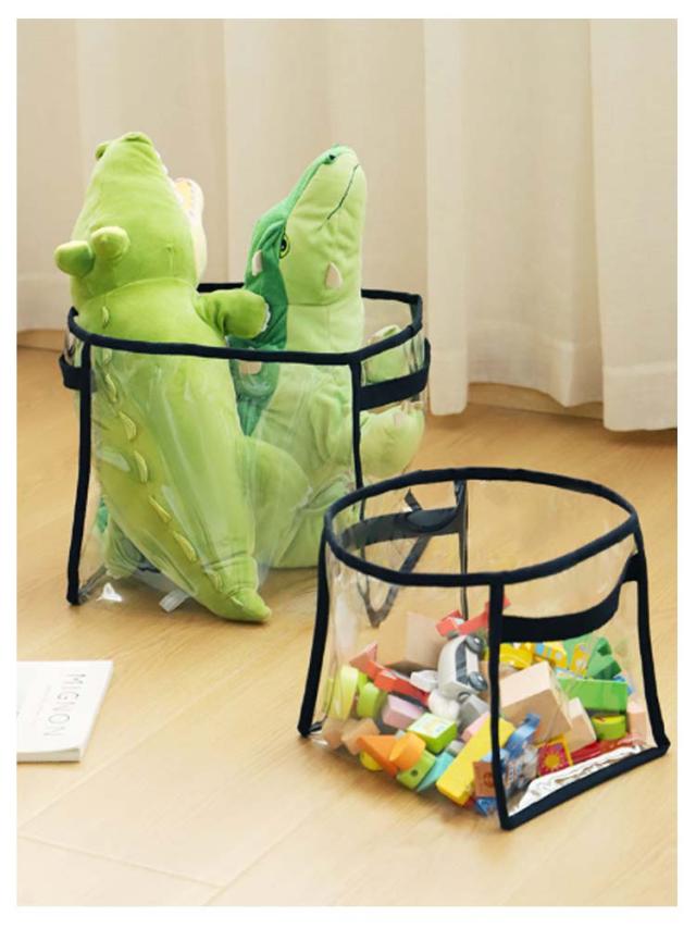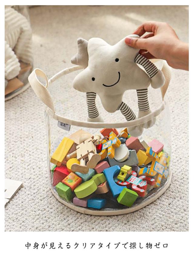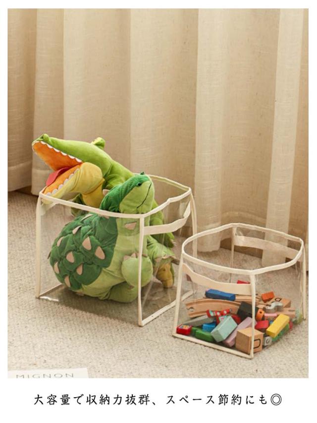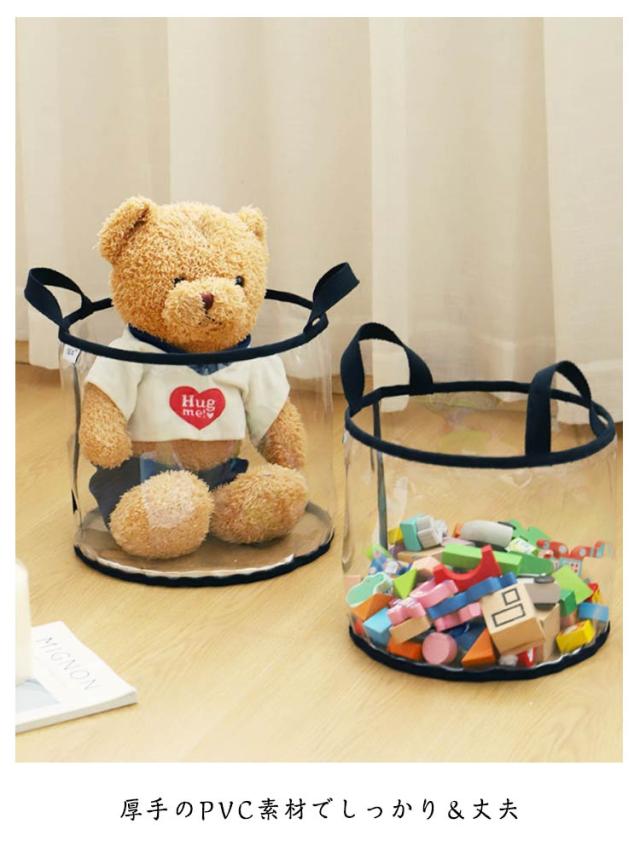 大容量 クリア PVC かご型 収納バスケット 持ち手付き 収納ボックス クリア 見せる収納 おもちゃ収納 透明 おもちゃ箱 収納ケース ぬいぐるみ 雑貨 小物収納 整理 ディスプレイ 自宅 保育園