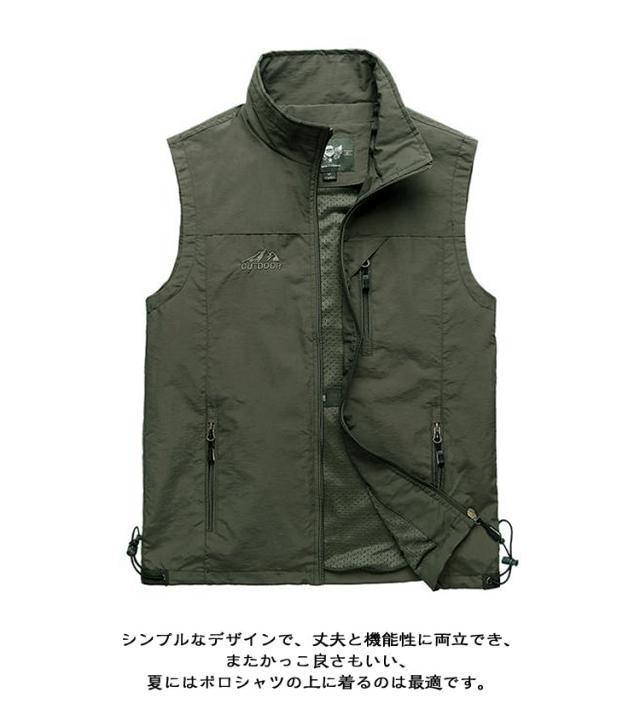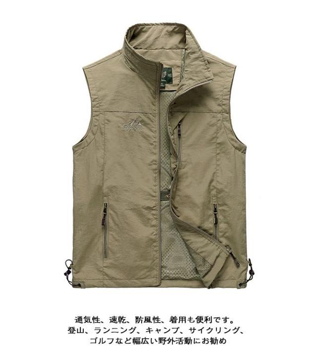 制服 ベスト 上着 通勤 通気性 メンズ 春夏 裏メッシュ ミリタリーベスト スポーツベスト アウトドア ベスト 男性 前開き ゴルフウェア お釣りベスト 紳士 作業服 防風 ウィンドブレーカー 薄手 カメラマン キャンプ