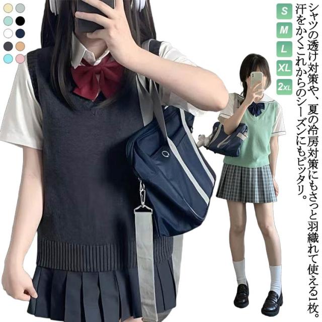 Vネック スクールベスト スクールセーター ベスト 制服 二ットソー 通学 女子 夏 学生服 中校生 高校生 トップス スクールベスト 女子高生 ニットセーター 入学準備 女の子 無地 カジュアル コスプレ 入学式 卒業式 仮装 発表会 文化祭 学校 スクール