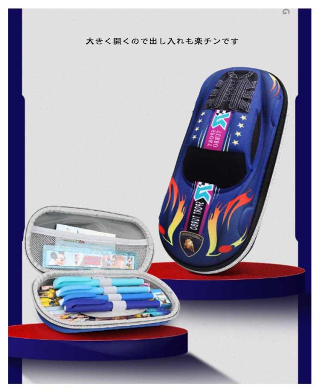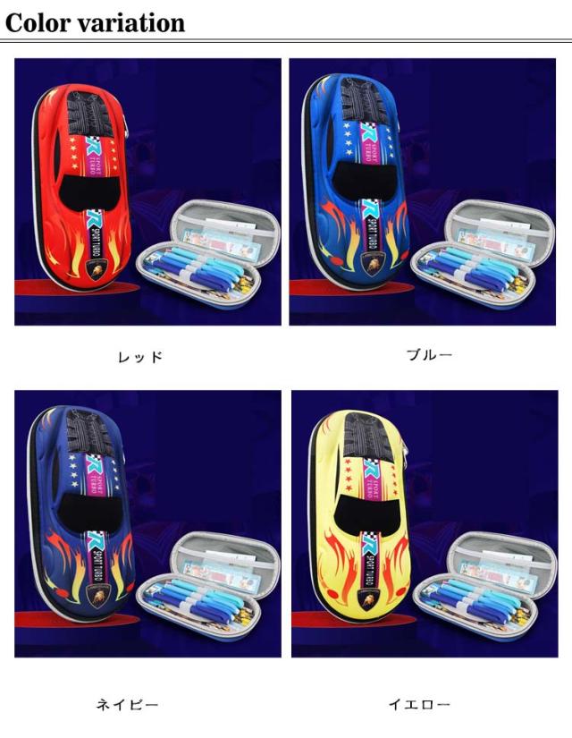 | スポーツカーをモチーフにしたかっこいいペンケース。 大容量なので、ペン、消しゴムなどたくさん入ります。 大きく開くので出し入れも楽チンです♪ 撥水性に優れる丈夫な素材でできています。汚れなどを水でサッと軽く拭き取ることができます。 | |