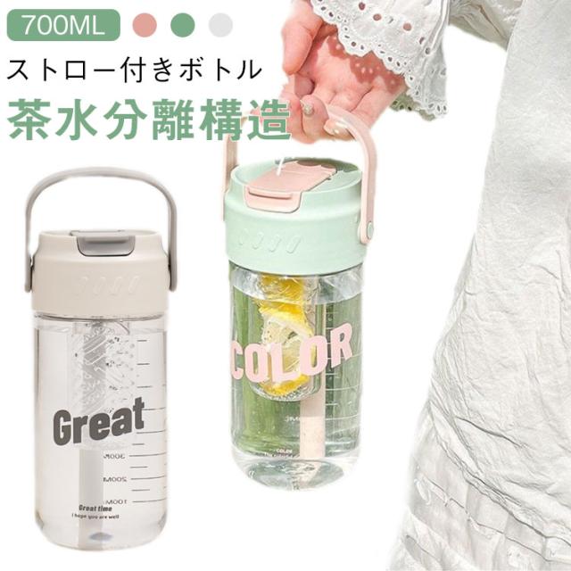 700ml セパレート式 大容量 ボトル ウォーターボトル 女の子 ストロー付き 花茶 ストロー ストロー付き水筒 水筒 ストロー付き水筒 可愛い プラスチック 果茶 直飲み 漏れない ストロー付きボトル ジム スポーツ水筒 水分補給