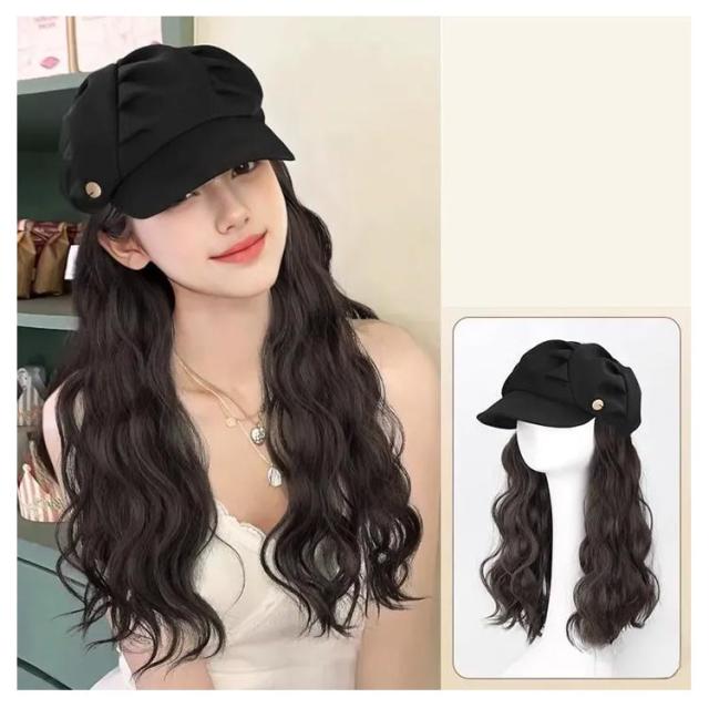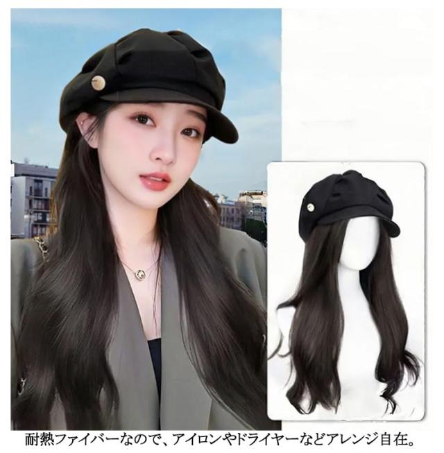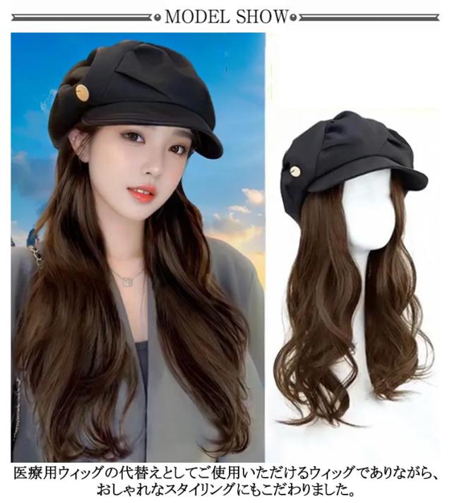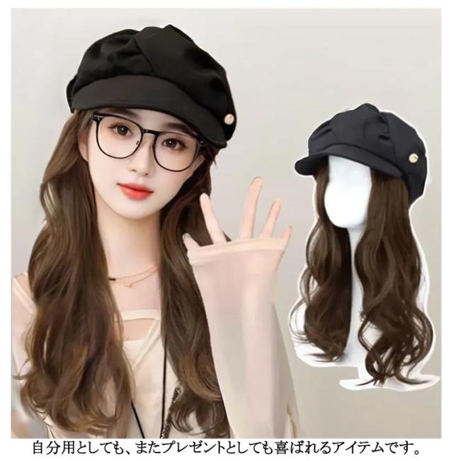 脱毛 ウィッグ付きキャスケット かつら 髪付き帽子 帽子付きウィッグ かつら ベレー帽ウィッグ かぶるだけ 小顔効果 毛付き帽子 医療用帽子 レディース ウィッグ付き帽子 髪付き帽子 ウィッグ キャップ キャスケット ロング巻き 日常用