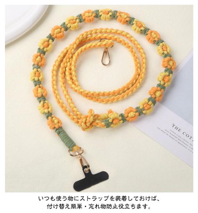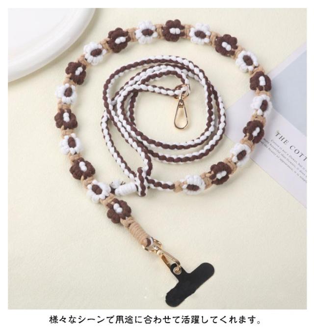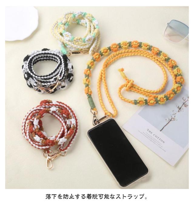 ロングストラップ スマホストラップ ベルト 長さ調整可能 編み込み 携帯電話ストラップ スマホショルダー ショルダーストラップ カメラストラップ フラワー 交換用 斜め掛け 肩掛け 首掛け スマートフォン ストラップ 可愛い