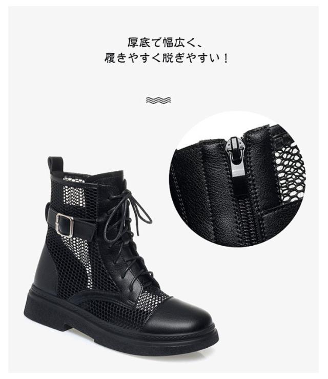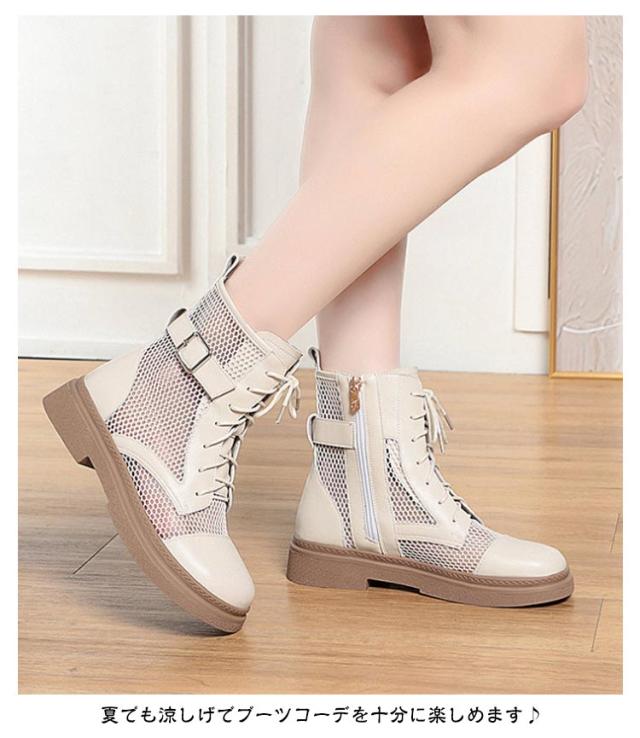 サイドファスナー 透け感 ショートブーツ サマーブーツ ブーツサンダル 夏用ブーツ エンジニアブーツ メッシュ 編み上げブーツ フラットサンダル シューズ 通気性 コンフォート レディース カジュアル 歩きやすい 履き心地 美脚 通勤 通学
