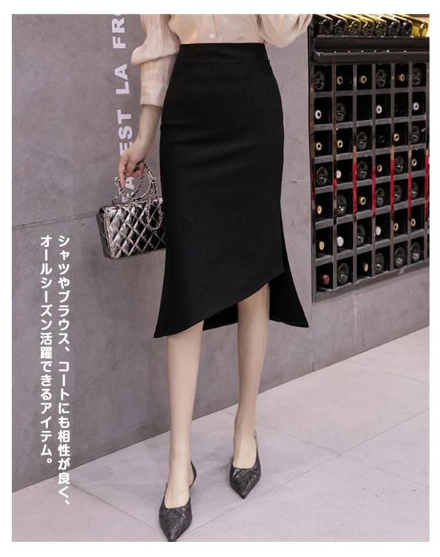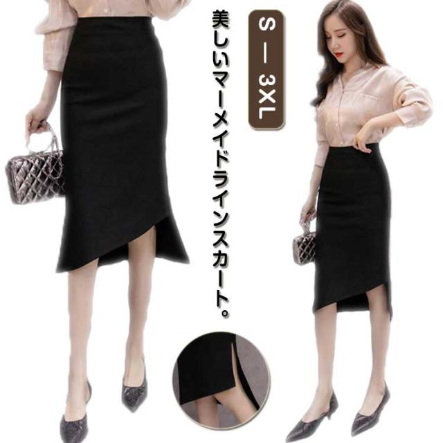 マーメイドスカート タイトスカート スリット スカート フレア ロング丈 ハイウエスト スカート ウエストゴム タイトスカート スカート ストレッチ スッキリ細見え 高見え 着痩せ 大きいサイズ きれいめ フォーマル 大人 きれいめ 通勤 通学 ブラック