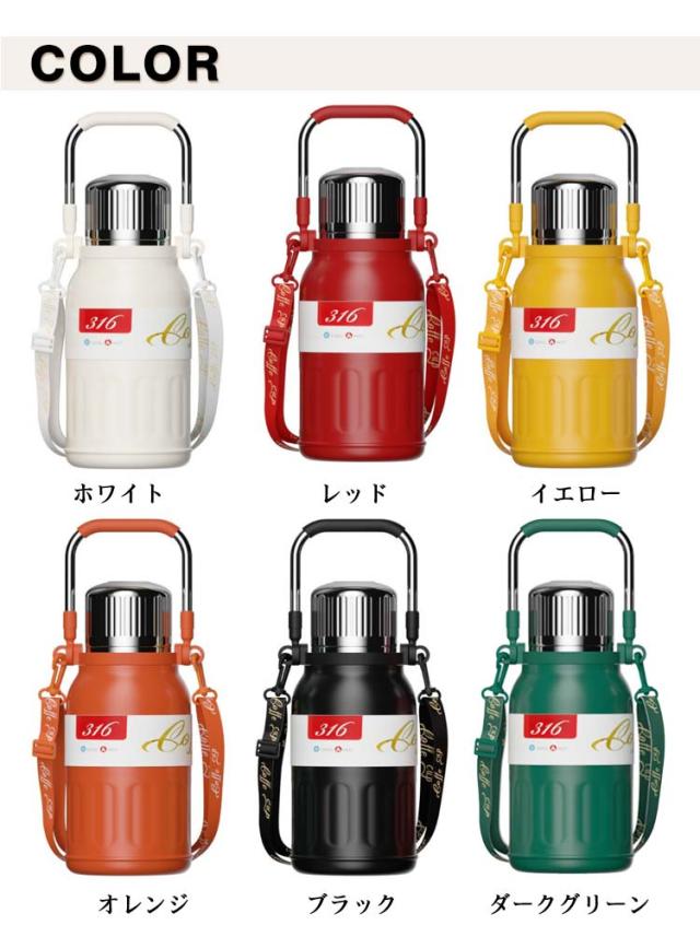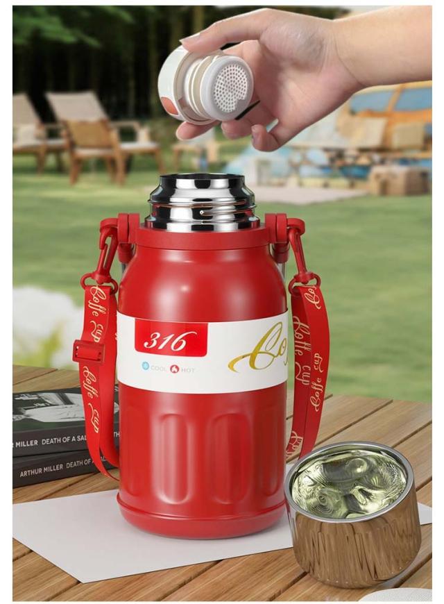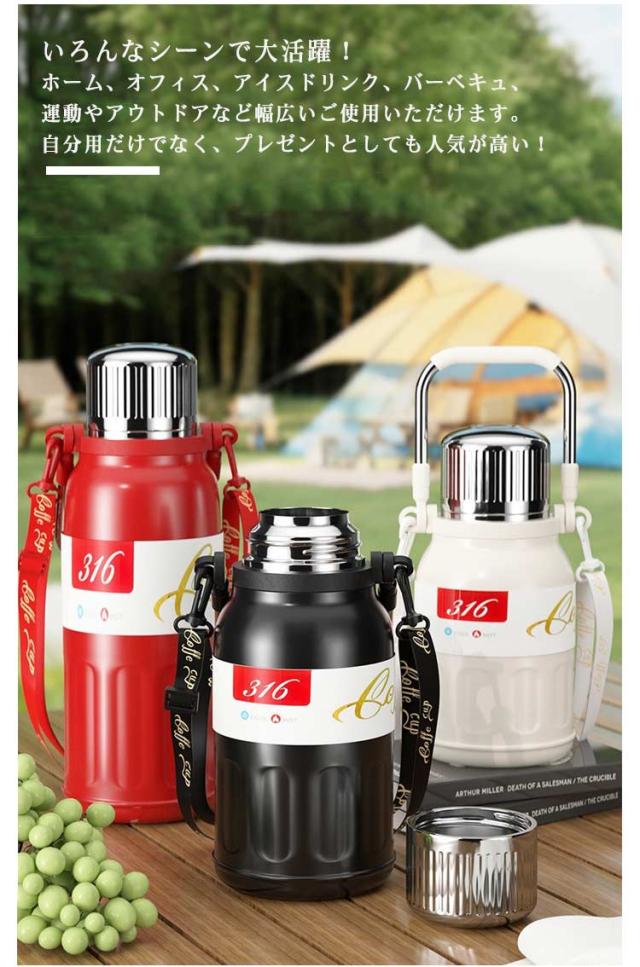 | 保温&保冷水筒/コップと肩紐付!茶こし付き ハンドル付き 水筒 タンブラー いろんなシーンで大活躍!ホーム、オフィス、アイスドリンク、バーベキュ、運動やアウトドアなど幅広いご使用いただけます。自分用だけでなく、プレゼントとしても人気が高い! 真空2重構造を採用しているので保冷、保温性は抜群! 大容量で毎日の水のニーズを補給することができます。 保冷・保温に優れたステンレスボトルです。温かい状態も冷たい状態も長時間キープすることができます。 どんな飲み物・シーンにも!夏のビール、アイスコーヒー、また冷たい麦茶に。冬にホットコーヒー、暖かいお湯にも!オールシーズンでお使うことはできます。 ベルトがついているため、持ち運びに楽々!どこでも簡単に移動できます。取り外せるショルダーストラップが付いているのでお子様用にも◎ | |