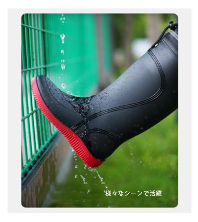 | 24.5-27.5cm 水が入らない 普段使いもできるデザイン 雨が上がってもそのまま履いていたくなる長靴としてだけ使うのがもったいないデザイン 様々なシーンで活躍 農作業、ガーデニング、キャンプ、釣りなど、アウトドアでも活躍。 上からも水が入らない 履き口部分はゴム入りで、絞る事ができる。脚にフィットさせれば、雨や泥が入らない。 凹凸のあるソールで滑りにくい 柔らかく、足も疲れにくい。 | |