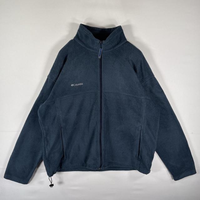 古着 コロンビア Columbia フリースジャケット フルジップ ワンポイントロゴ刺繍 アウトドア 大きいサイズ ブルー系 メンズ