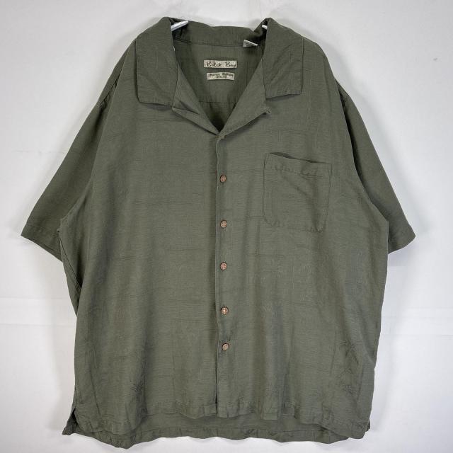 古着 Batik Bay 半袖シャツ アロハ シルク オープンカラー 大きいサイズ XXL グリーン 総柄 メンズ