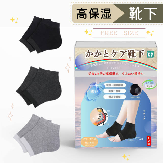 【繰り返し使用可能】 寝る時、家事をするときに優しく足のお手入れが出来ます。皮膚に潤いを与え、角質を柔らかくし、お足肌の乾燥を防ぎます。かかとを使い続けるだけでキレイになります。3足分がありますので、洗い替えできる。水洗いできます。しかもお洗濯で繰り返し使用可能!靴下によく密着していて、いくら洗濯しても落ちません。
