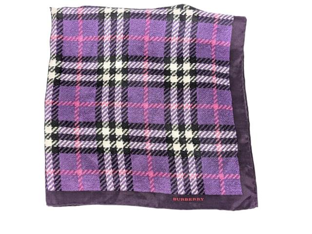 バーバリー スカーフ ハンカチ 大判 57cm パープル チェック 絹 シルク レディース BURBERY 【中古】