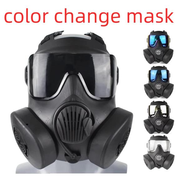 Zlangsports 色が変わる戦術ペイントボールエアガンフルフェイスマスクダブルファン付きCSコスプレ保護マスク