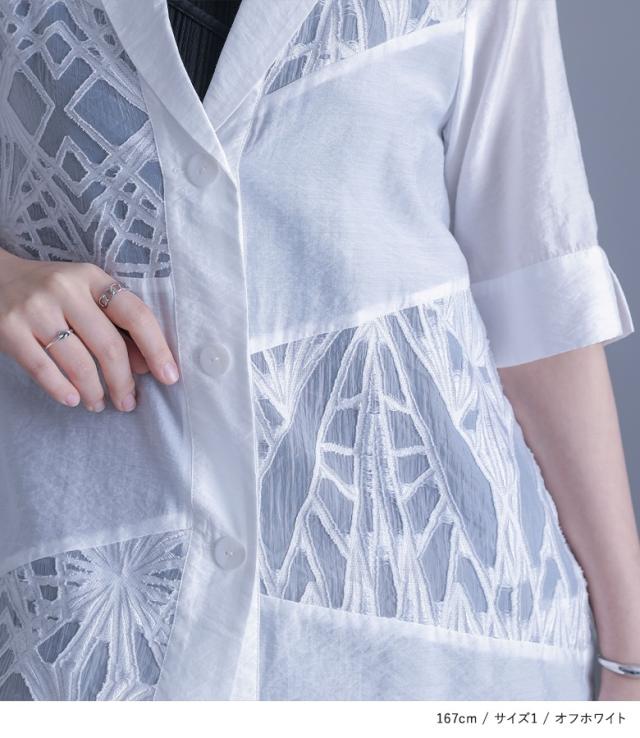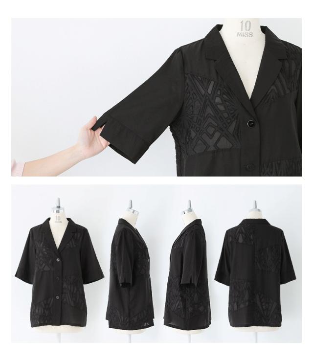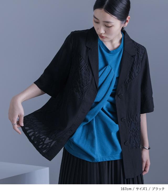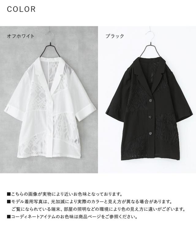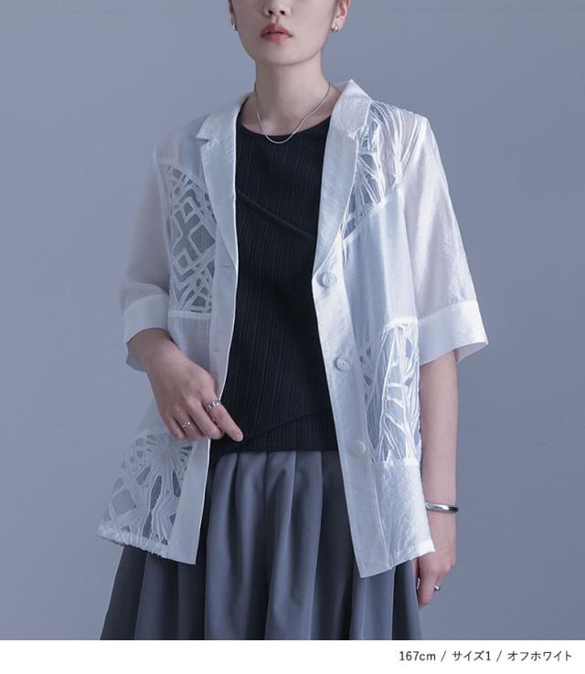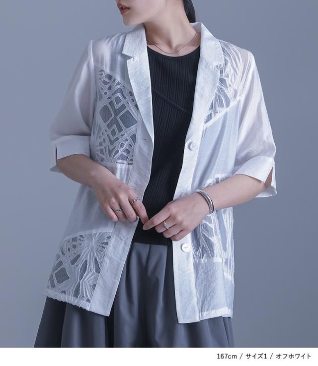 『シアー切替テーラードジャケット』※メール便可※【10】[ジャケット レディース アウター テーラードジャケット 五分袖 シアー 透け感 切り替え 二の腕カバー スリット パイピング 夏]