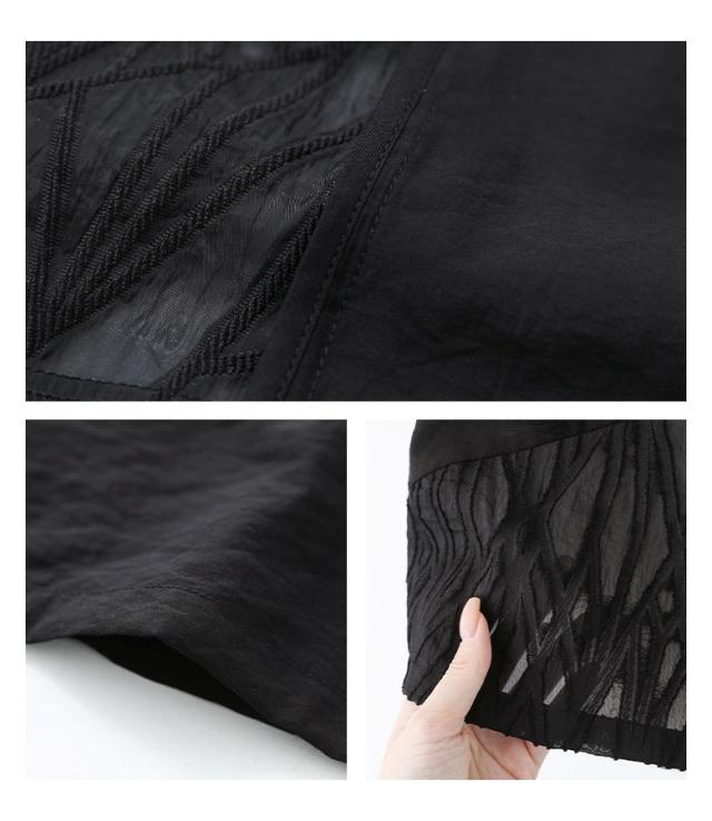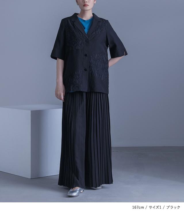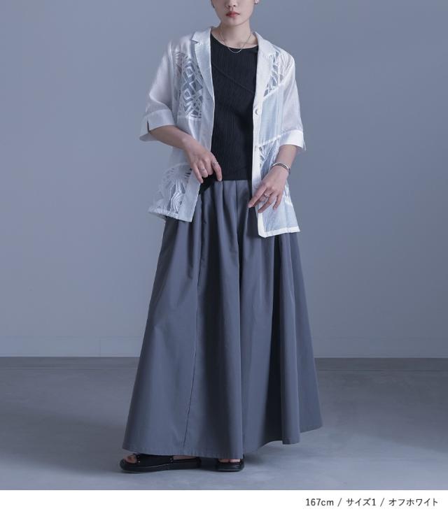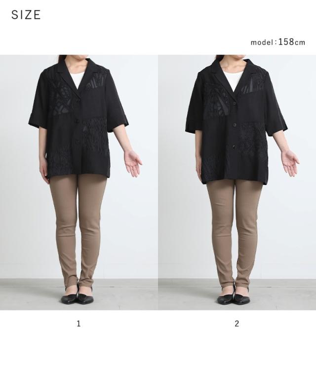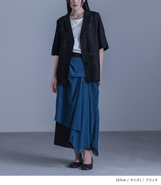 ■デザイン 表面感のある柄シアー生地と無地のシアー生地をランダムに切り替えたテーラードジャケット。二の腕が隠れる袖丈ですが、スリットデザインで抜け感と動きを出して涼しげな印象をプラスできます。肩線や脇、後中心はパイピング始末をしているため、着用した時にチクチク感を感じにくいのも嬉しいポイント。 ■コーディネート デザイン性がありながらもシンプルなので、様々なボトムスに合わせていただけます。シンプルなボトムスと合わせてカジュアルな印象、デザイン性のあるボトムスと合わせてモードな印象に。フレアスカートと合わせてもバランス良くお召しいただけます。 ■素材 さらりとした肌触りの生地を使用。透け感がある生地のため、涼しげな印象をプラスできます。 ■製品についての注意書き 肌刺激につきまして こちらの商品は、 お肌に刺激を感じる場合がございます。 ご了承の上、ご購入いただきますようお願いいたします。 |