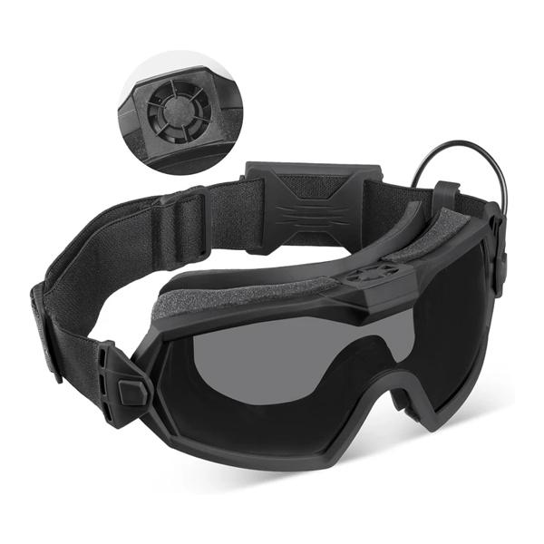 ファンと交換レンズ付き防曇ゴーグル、サイクリングペイントボール狩猟オートバイ用安全ゴーグルとメガネ