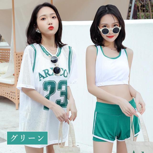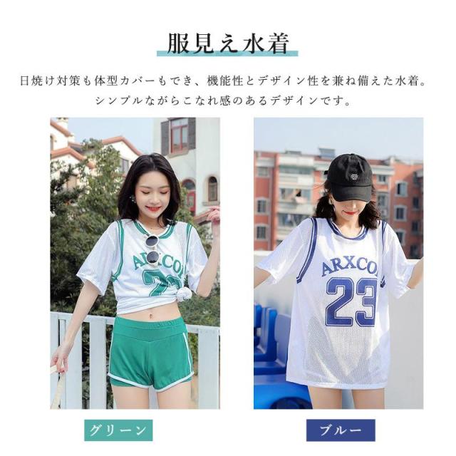 水着 レディース 体型カバー 高校生 中学生 3点セットプール スポーティー ママ 水着 ラッシュガード 韓国 女の子 10代 20代 30代 海 可愛い おしゃれ