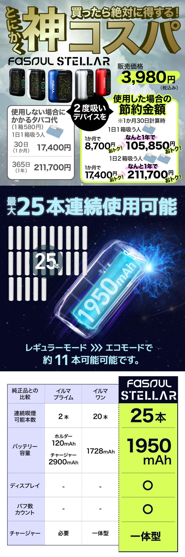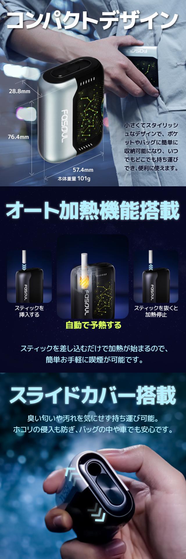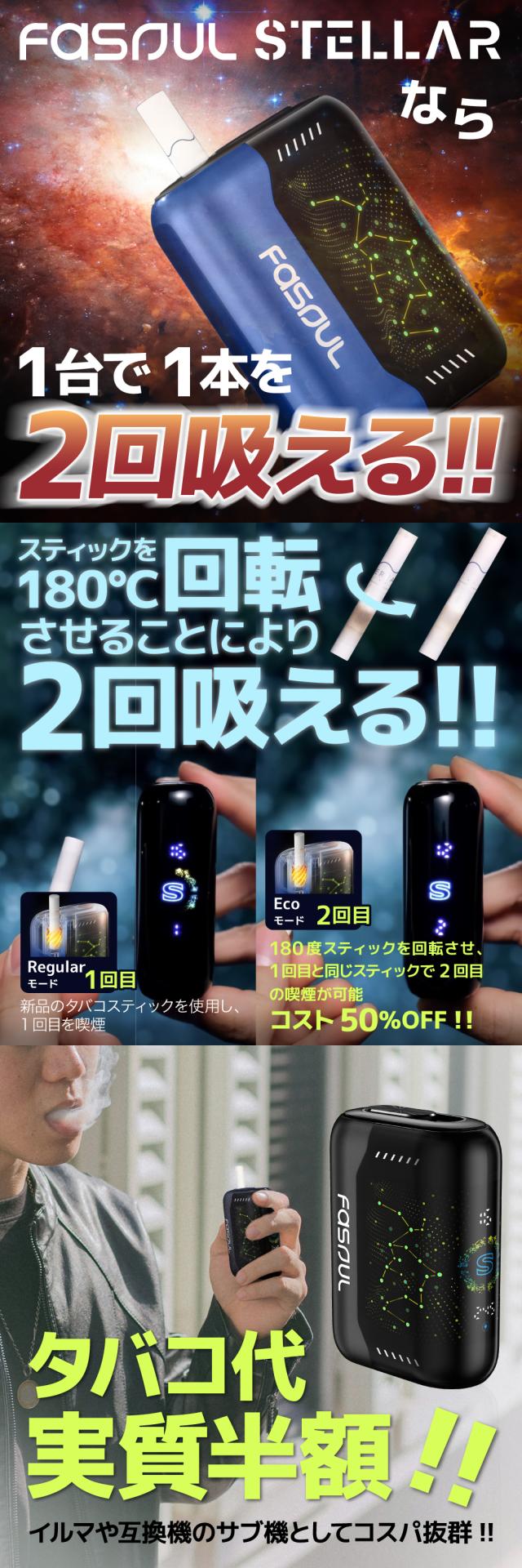 【1台で2回吸える】Fasoul Stellar ファソウル ステラ アイコスイルマ互換機 2度吸い 2回吸える アイコス互換機 シケモク マシーン 最新 連続25本 コンパクト IQOSイルマ互換機 イルマ互換 電子タバコ 本体 加熱式タバコ ランキング IQOSILUMA用 アイコスイルマワン用