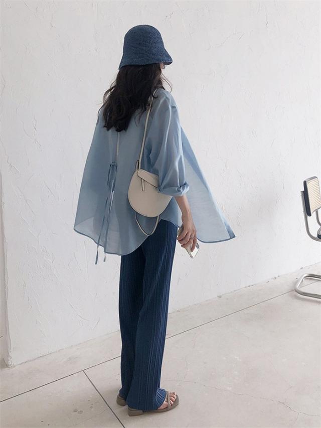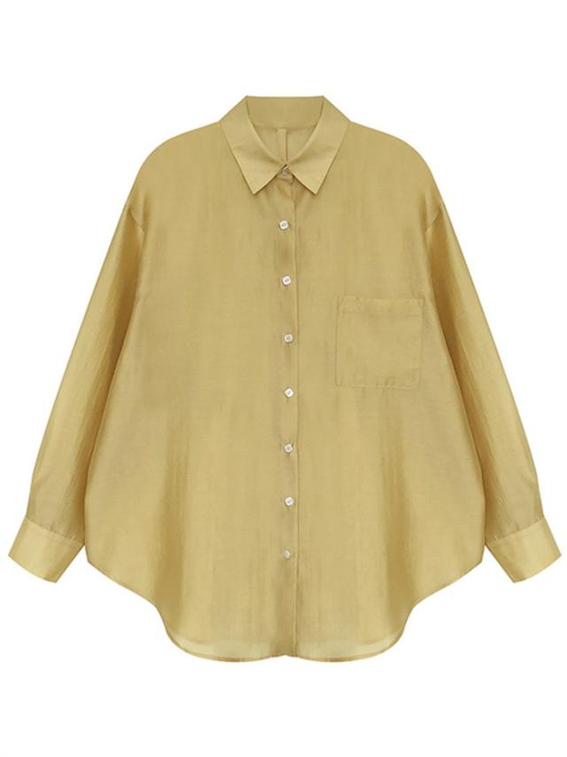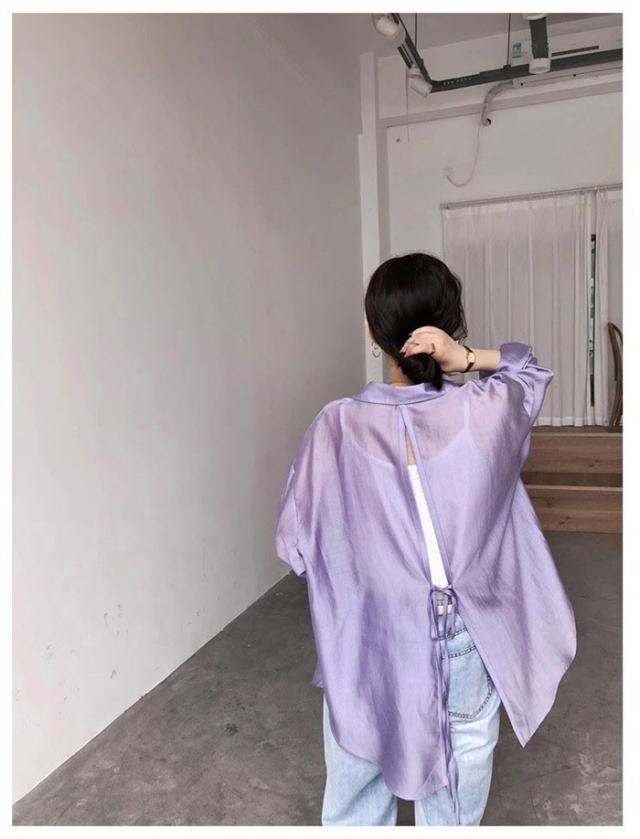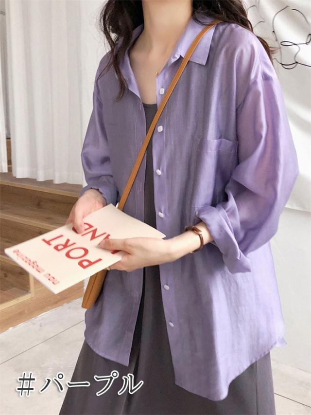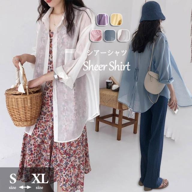 シアーシャツ レディース 夏 長袖 シースルー 大人 日焼け対策 uv対策 体型カバー 薄手 シアー トップス ボタン タレ感 前開き 微透け 透け感 ゆったり カジュアル シャツ ブラウス ホワイト イエロー ピンク ブルー パープル dh076x1x1x7 dh076x1