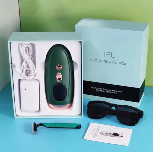 【商品情報】脱毛器本体、電源アダプター、サングラス、カミソリ、取扱説明書
