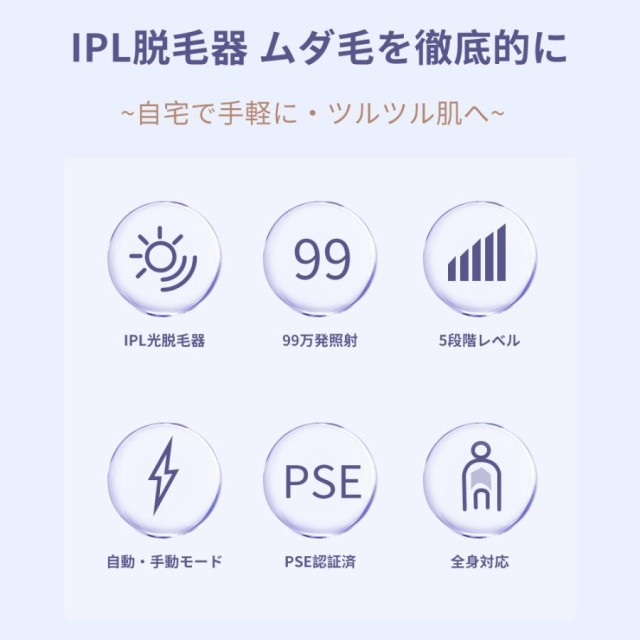 脱毛器 全身脱毛 vio対応 IPL光脱毛器 家庭用 5段階調節 99万回照射 自動連続照射 無痛 光美容器 光エステ サロン級脱毛 男女兼用