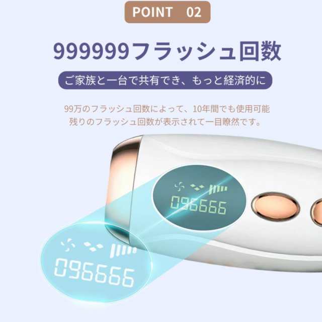 【99万回照射回数&全身対応】照射回数999900回、部品交換不要で経済的。家族や恋人、友人と一緒に使うことができます。腕、足、脇、体、顔、VIOなどの敏感な部位を含め、ほぼ全身に使える家庭用脱毛器。