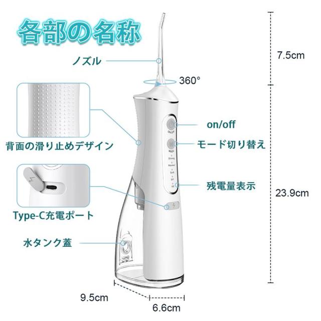 即日発送 口腔洗浄器 歯垢除去 超音波ジェットウォッシャー 口腔洗浄機 4つモード 300ML IPX7防水 携帯 歯間ジェット ポケット 家庭用 携帯 敬老の日 誕生日 ギフト